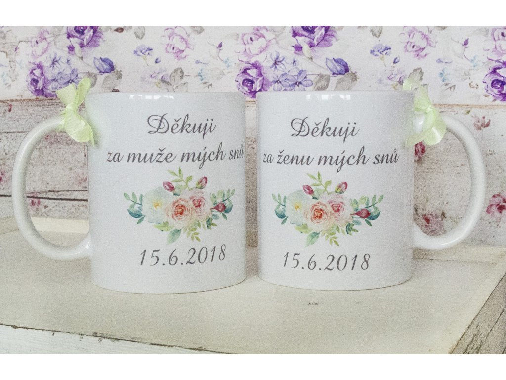 Hrnečky pro budoucí tchýně a tchány s krásným květinovým motivem.