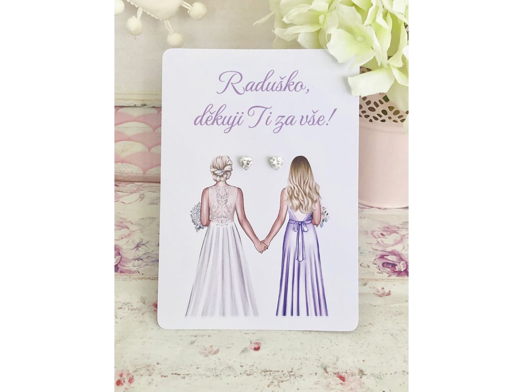 Karta s náušnicemi jako žádost či poděkování pro svědkyně, nebo družičky.