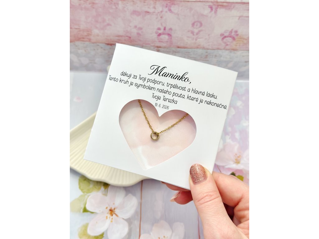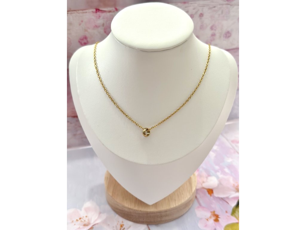 Jemný decentní náhrdelník ze zlaté oceli s přívěskem - kroužek, který představuje nekonečné pouto mezi maminkou a dcerou.