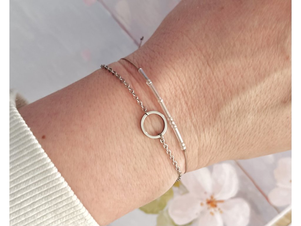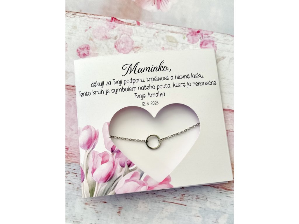 Elegantní náramek z kvalitní chirurgické oceli s přívěskem kruhu pro maminky.