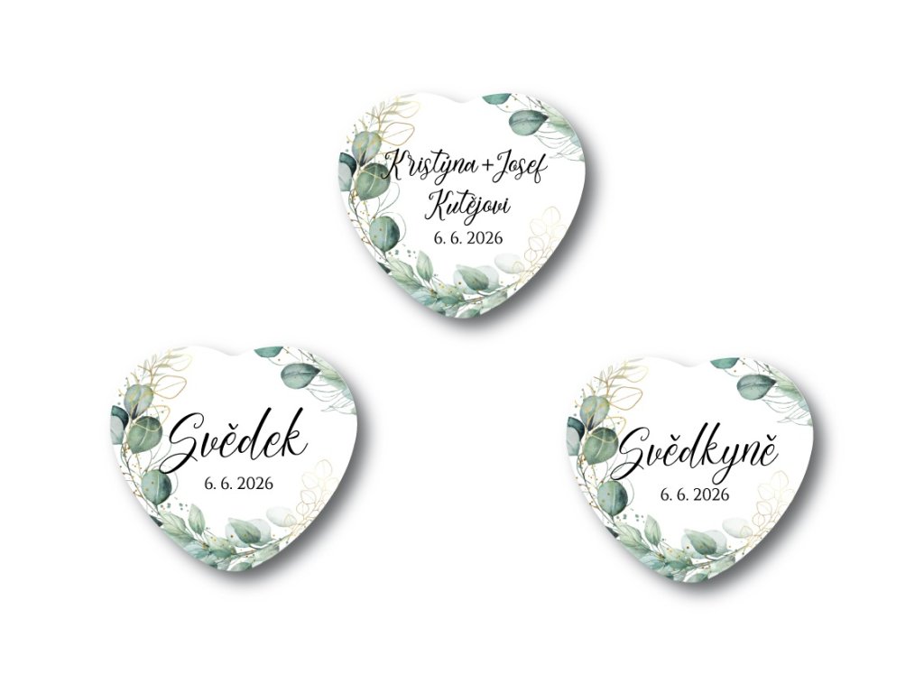 130x buttony srdce - 1x svědek, 1x svědkyně, 128x Kutějovi